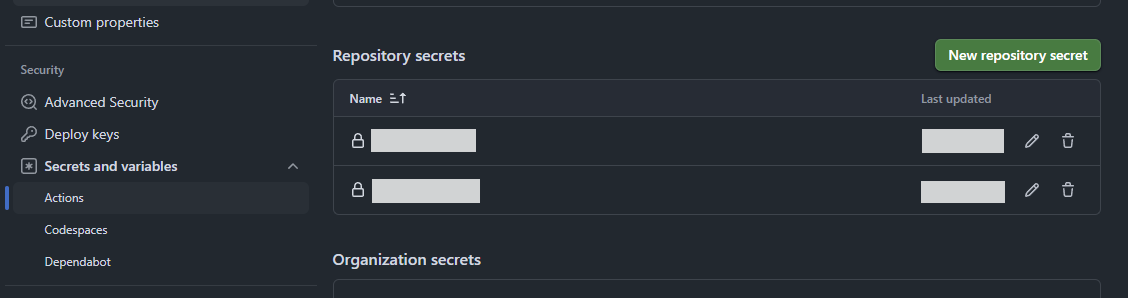 - Github 레포지토리 Settings > Secrets and variables > Actions > New repository secret 생성 -> yml 파일에서 사용